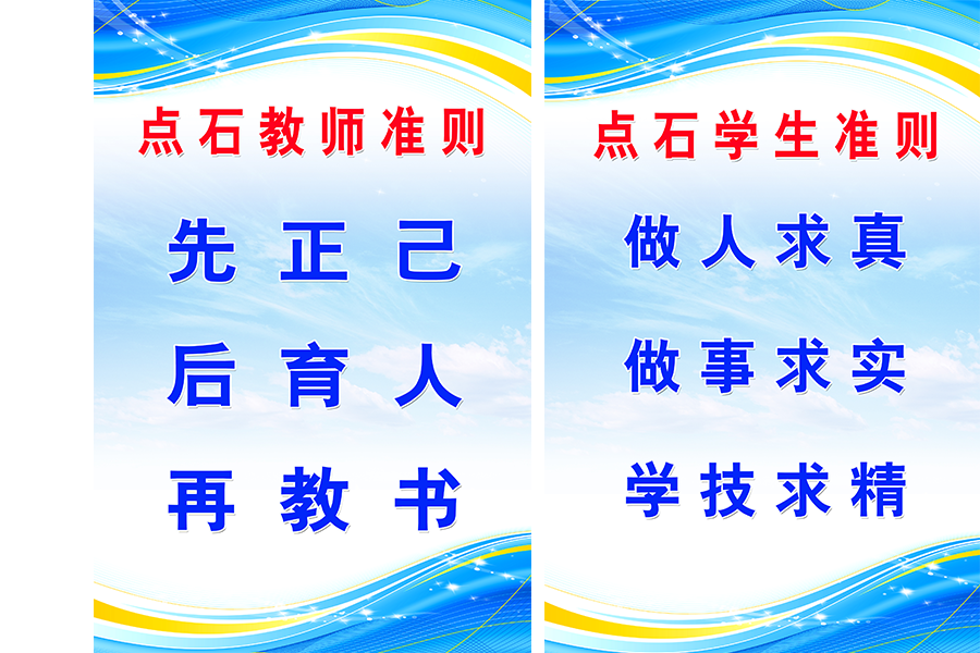 点石特色教育遵循“先成人,后成才”、“先做人,后做事”的人才成长和培养规律,以“端正态度、规范行为”为抓手,培养学生正确的价值观、远大的理想抱负和强烈的社会责任感,为学生日后成为既懂技术又懂管理的高素质人才奠定坚实的基础。